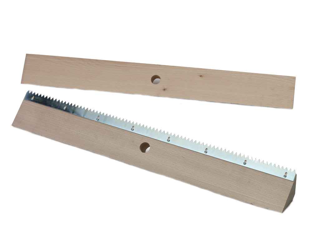 Dreikant-Hartholz, 70 cm breit mit Sägeblatt wahlweise mit oder ohne Holzstiel, extra breite Ausführung.