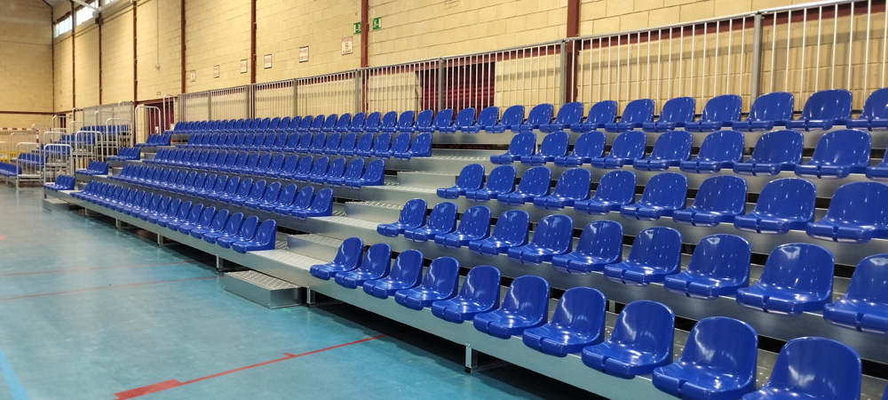 - Die gesamte Tribünenkonstruktion sowie Handläufe, Stufen und Plattformen sind aus hochwertigem, verzinktem Stahl gefertigt. Die robuste Stahlkonstruktion ist mit rutschfesten Trittflächen als Bodenbelag ausgestattet. Die gesamte Konstruktion erfüllt alle wichtigen europäischen Normen und bietet maximale Stabilität und Sicherheit sowohl im Innen- als auch im Außenbereich. Die Sitzschalen bestehen aus schlagzähem, UV-beständigem und wetterfestem Polypropylen, in flammhemmender Ausführung. Auf Wunsch auch in B1 schwer entflammbarer Ausführung erhältlich. Preis auf Anfrage.