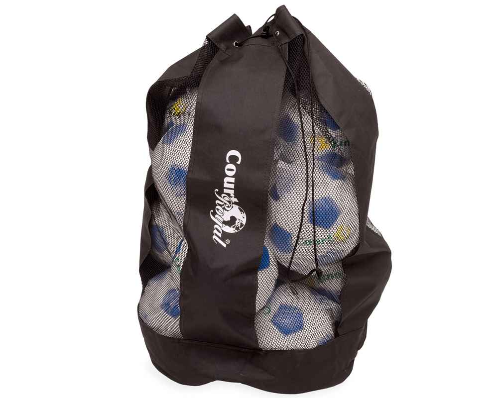 - Stabiler Ballsack aus Polyester mit seitlichen Entlüftungsnetzen und verstellbarem Tragegurt. Für 12 Bälle.