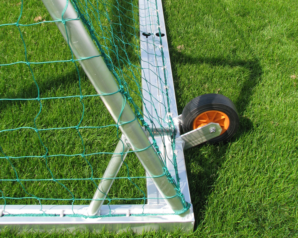 - Fußballtornetz Befestigung in zwei verschiedenen Ausführungen frei wählbar. Lieferung ohne Fußballtornetz inkl. 2 Stück angeschweißten Transporträdern, Gewichtsrohr (ohne Füllung) und notwendigem Zubehör.