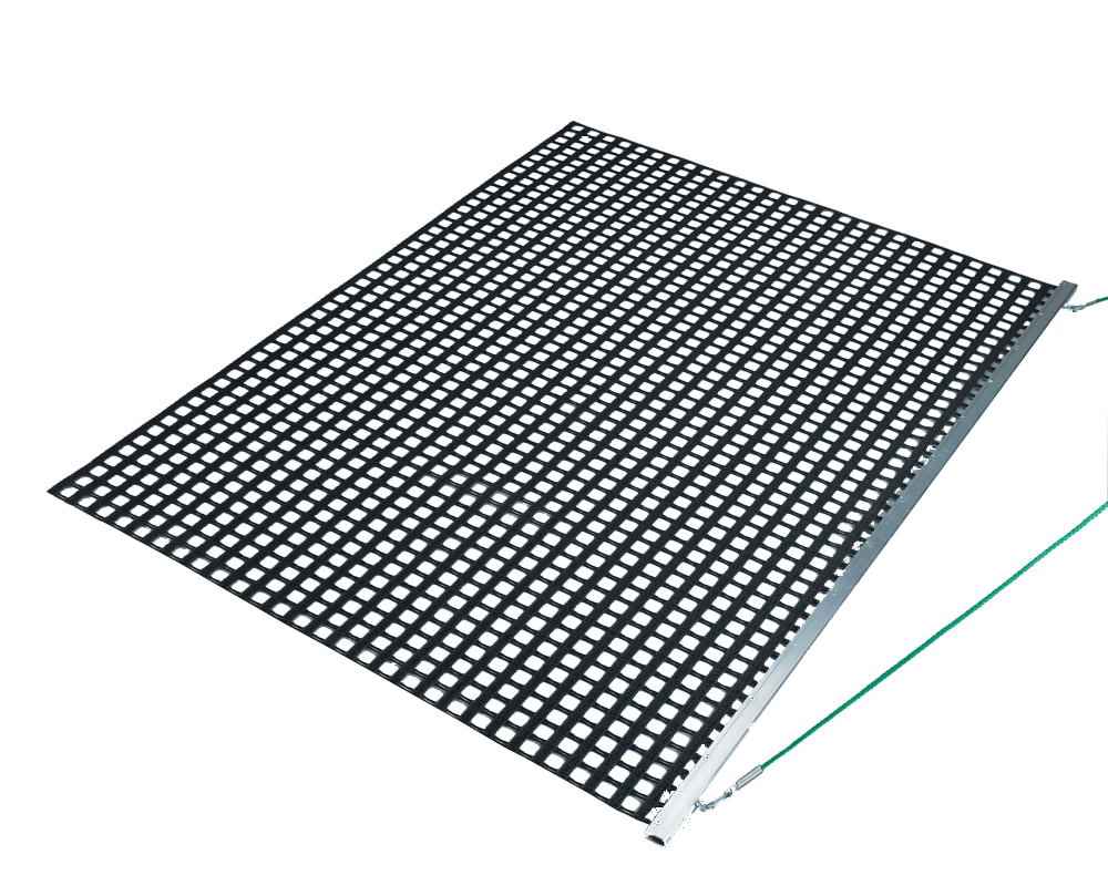 - Hochwertiges Tennis Schleppnetz aus beschichteten extra schweren PVC-Netzgewebe einlagig wetterfest, abriebfest, feuchtigkeitsabweisend, farbecht und UV-beständig. Komplett mit Schleppnetz-Abziehvorrichtung aus Aluminium Spezialprofil mit praktischer Öse zum einfachen aufhängen der Schleppnetze und Zugseil aus Polypropylen ca. 3,50 m lang mit 2 Stück Karabinerhaken.