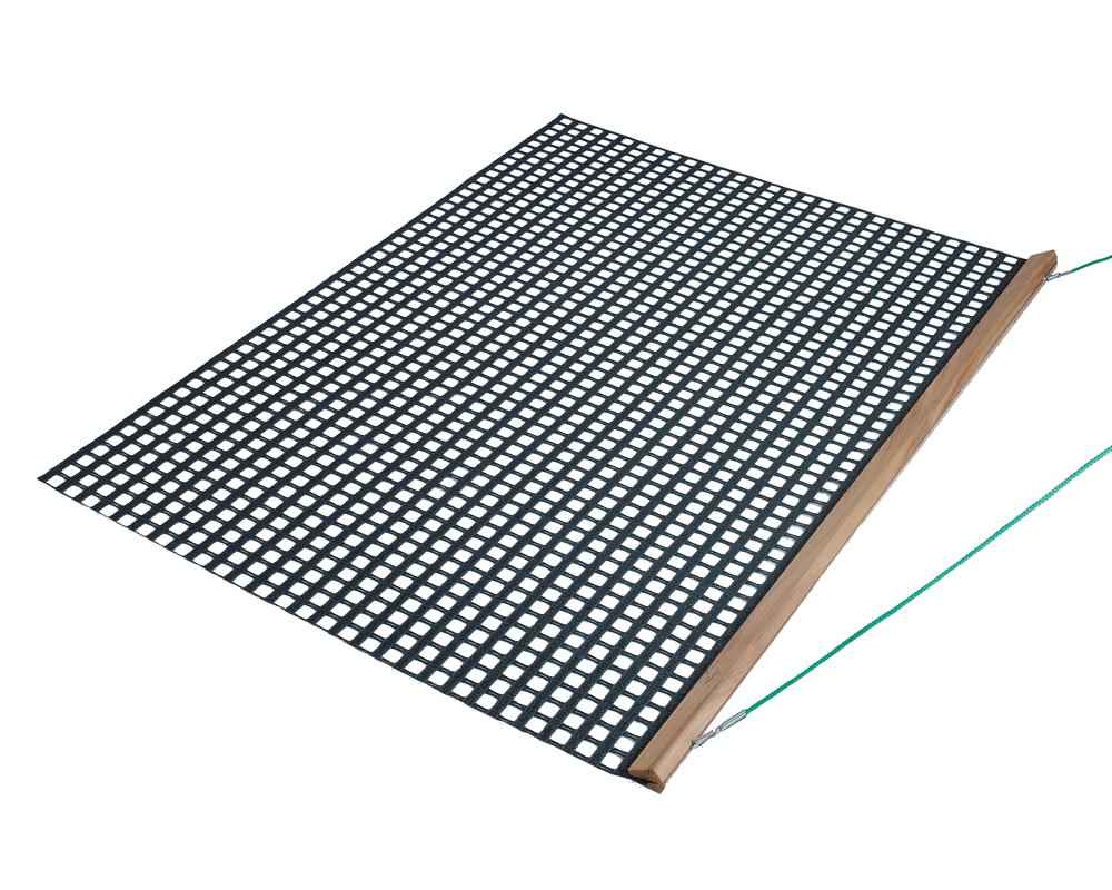 - Hochwertiges Tennis Schleppnetz aus beschichteten extra schweren PVC-Netzgewebe einlagig wetterfest, abriebfest, feuchtigkeitsabweisend, farbecht und UV-beständig. Komplett mit Schleppnetz-Abziehvorrichtung aus verwindungsfreien Red Pine Hartholz mit praktischer Öse zum einfachen aufhängen der Schleppnetze und Zugseil aus Polypropylen ca. 3,50 m lang mit 2 Stück Karabinerhaken.